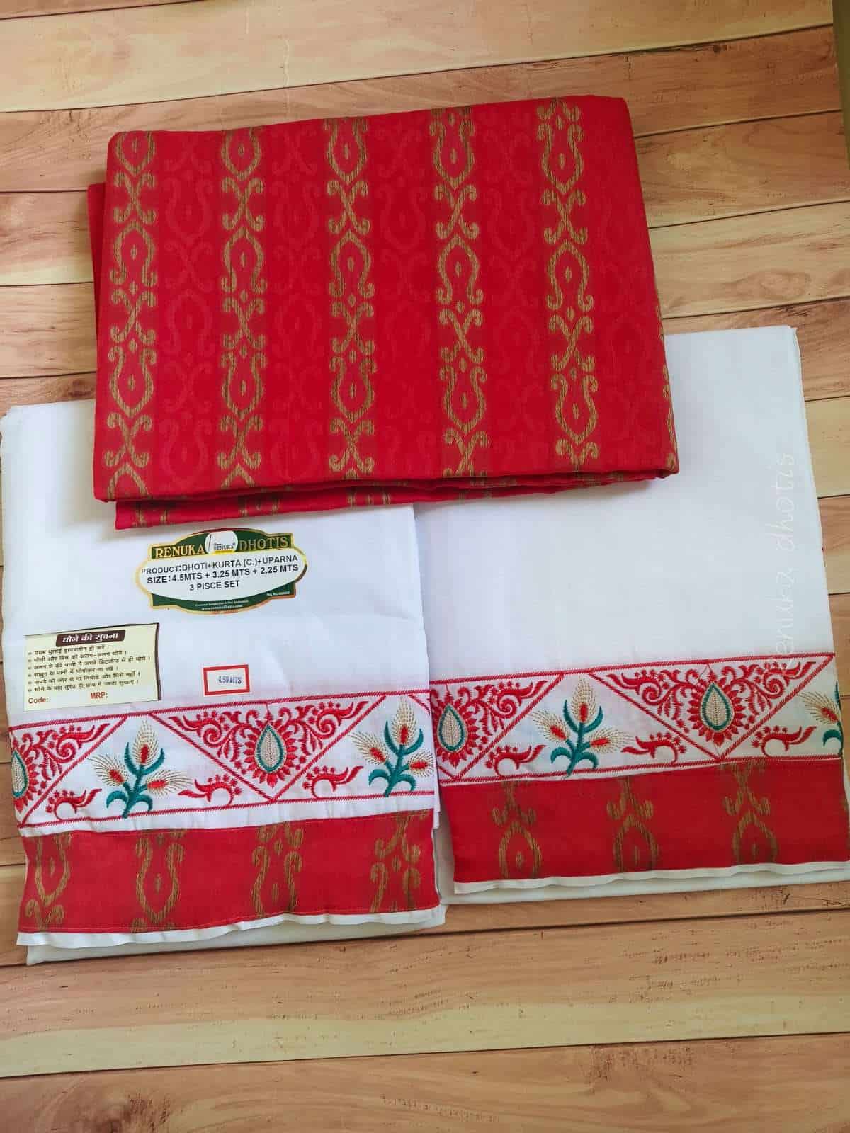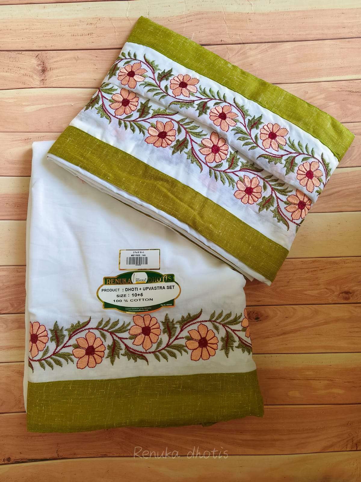Pure Cotton Embroidry Dhoti with Uparna set 100% Cotton Dhoti Set 10+5