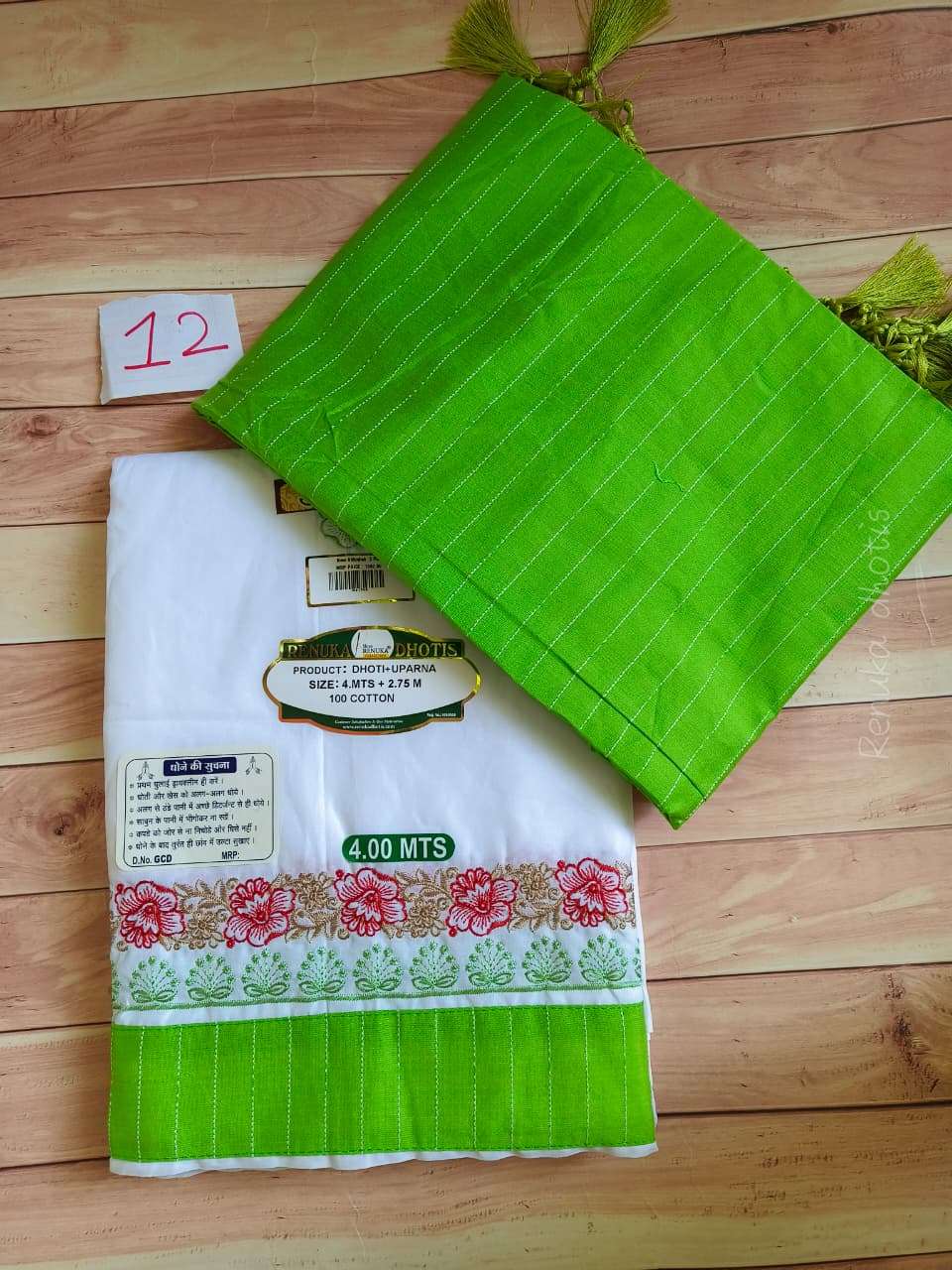Embroidry Border Dhoti with Color Uparna set 100% Cotton Dhoti Set 9+7 (4.00m + 2.75m)