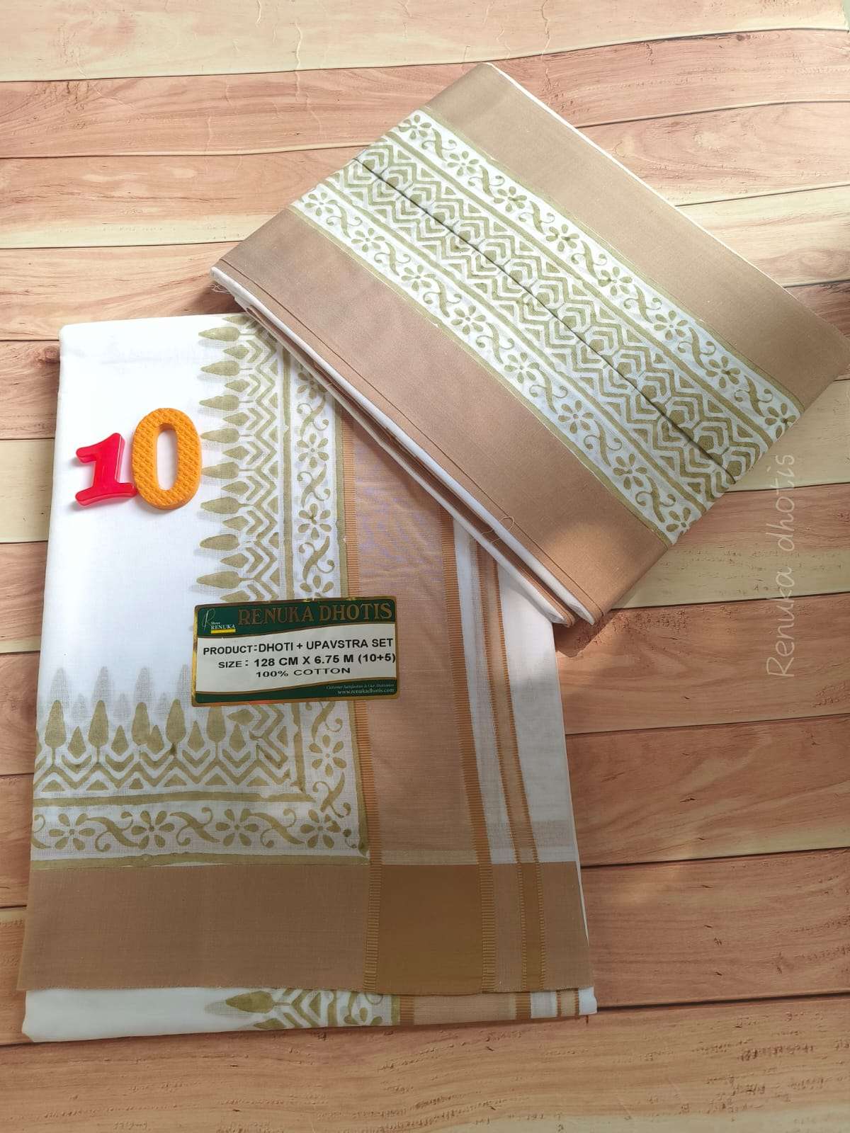 Renuka Sanskriti Block Print 10+5 Dhoti Set – Pure Cotton